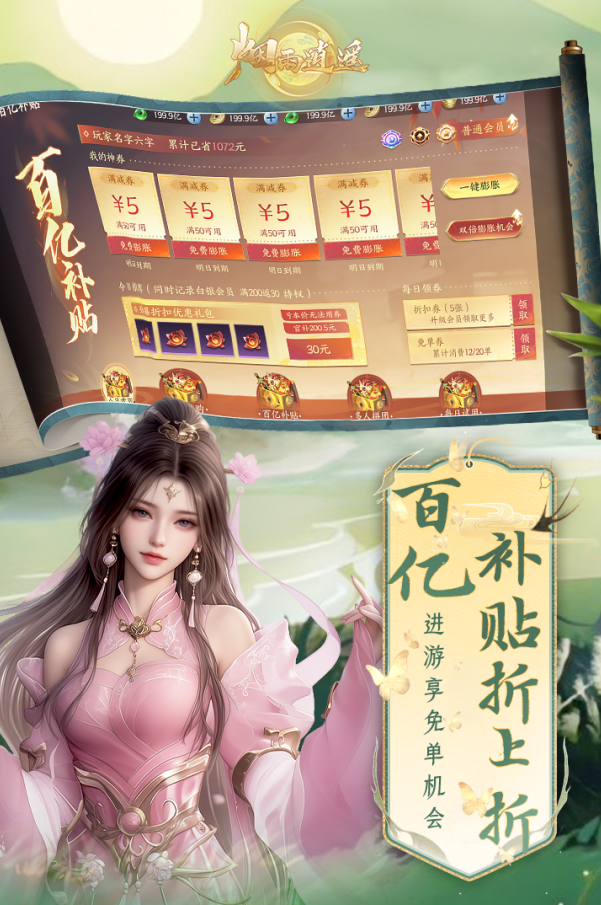 烟雨朦胧锁碧波,一叶扁舟任逍遥。《烟雨逍遥》是全新返利的国风修仙手游。以细腻逼真的建模、极具中式美学的意境构建一个如梦似幻的仙侠世界。仙侠们可以感受日升月落星辰交替的时光轮回,体验御剑飞行仗剑天涯的快意盎然,选择一念成仙一念成魔的自由剧本。在探索处处皆是奇遇的仙侠世界中通过完成任务、打败BOSS、挑战副本等玩法进行修炼,成就自己的逍遥梦。
